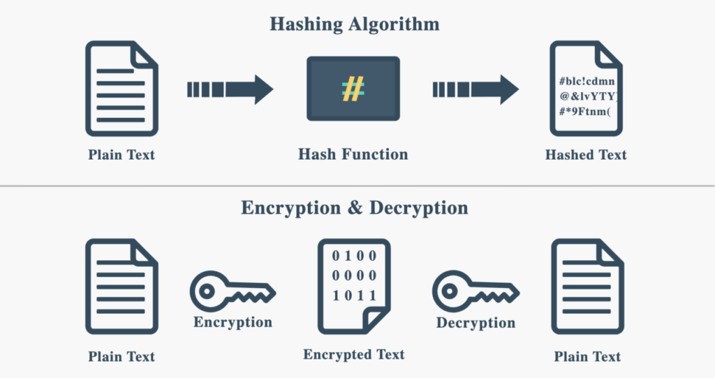- Password Storage: Instead of storing plain-text passwords, systems hash passwords before storing them in databases. When a user logs in, their password is hashed and compared to the stored hash for authentication. Techniques like “salting” (adding random data to passwords) further enhance security.