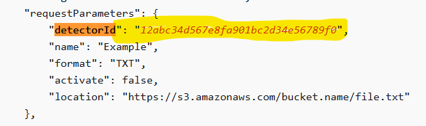 "message": "The request is rejected because the parameter detectorId has an invalid value.",