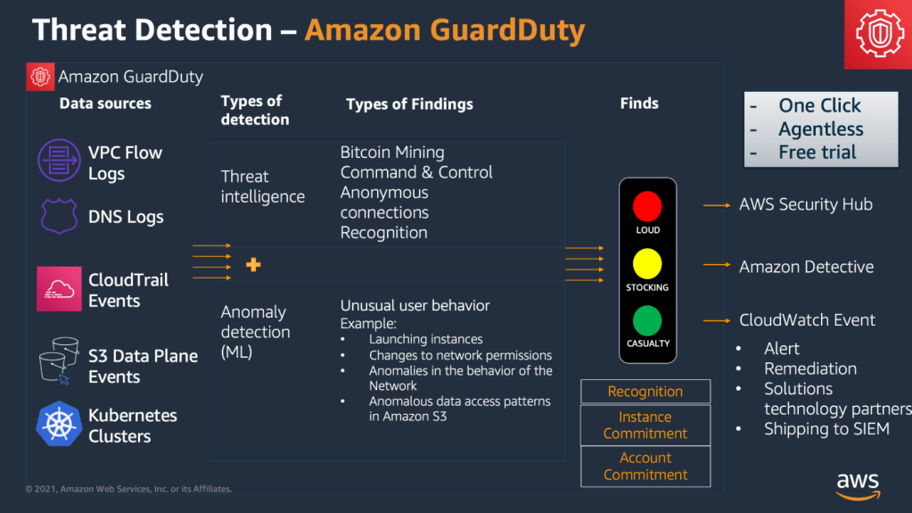 - Use-case focused GuardDuty protection plans – For enhanced threat detection visibility into the security of your AWS environment, GuardDuty offers dedicated protection plans